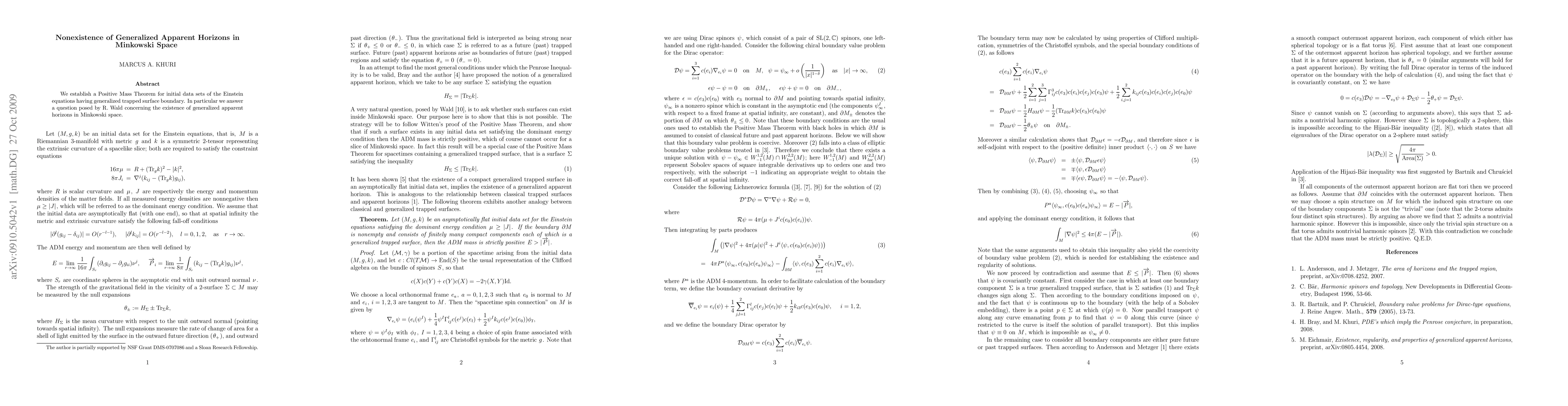 We establish a Positive Mass Theorem for initial data sets of the Einstein equations having generalized trapped surface boundary. In particular we answer a question posed by R. Wald concerning the existence of generalized apparent horizons in Minkowski space.