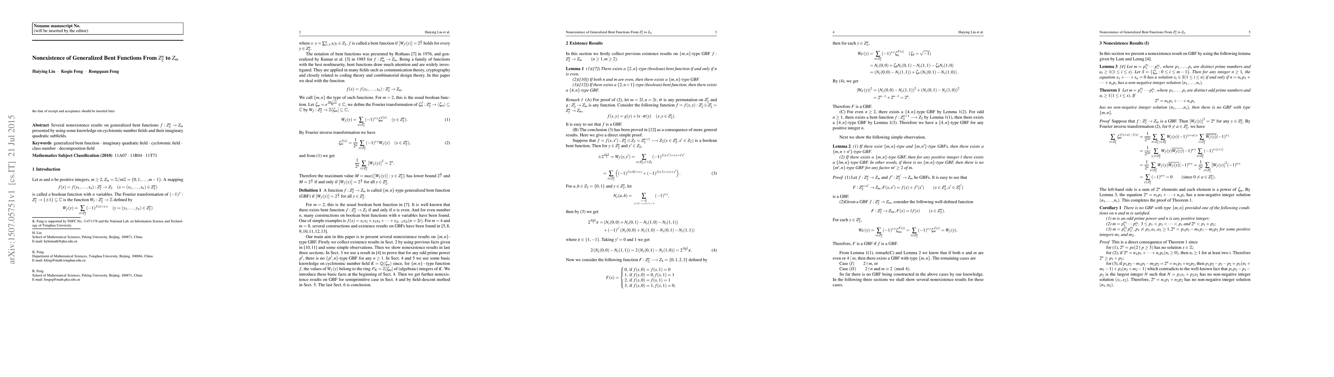 Summary: This paper demonstrates nonexistence results for generalized bent functions mapping from $Z_{2}^{n}$ to $Z_{m}$, utilizing insights from cyclotomic number fields and their imaginary quadratic subfields. The findings highlight the limitations of such functions under specified conditions.