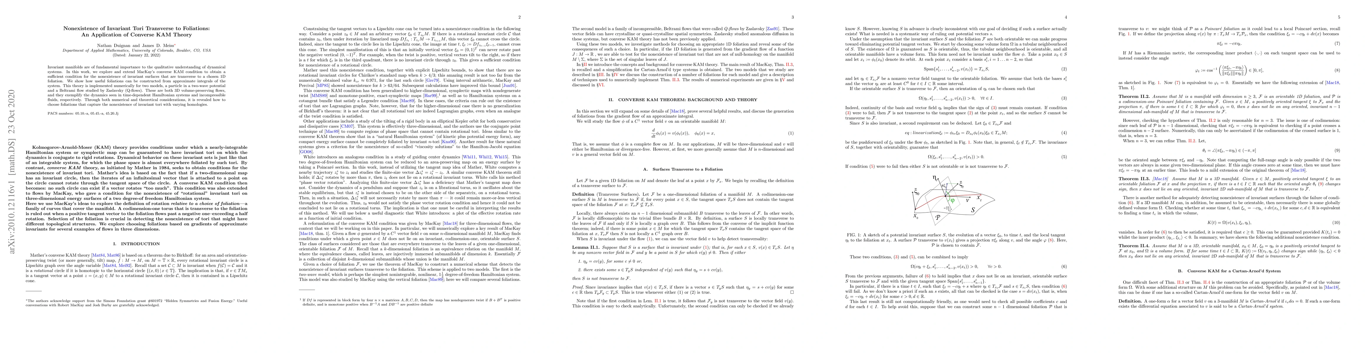 This paper extends MacKay's converse KAM condition to establish a sufficient criterion for the absence of invariant surfaces transverse to a 1D foliation in dynamical systems. The study applies this theory to two 3D volume-preserving flows, demonstrating the nonexistence of invariant tori through both numerical simulations and theoretical analysis.