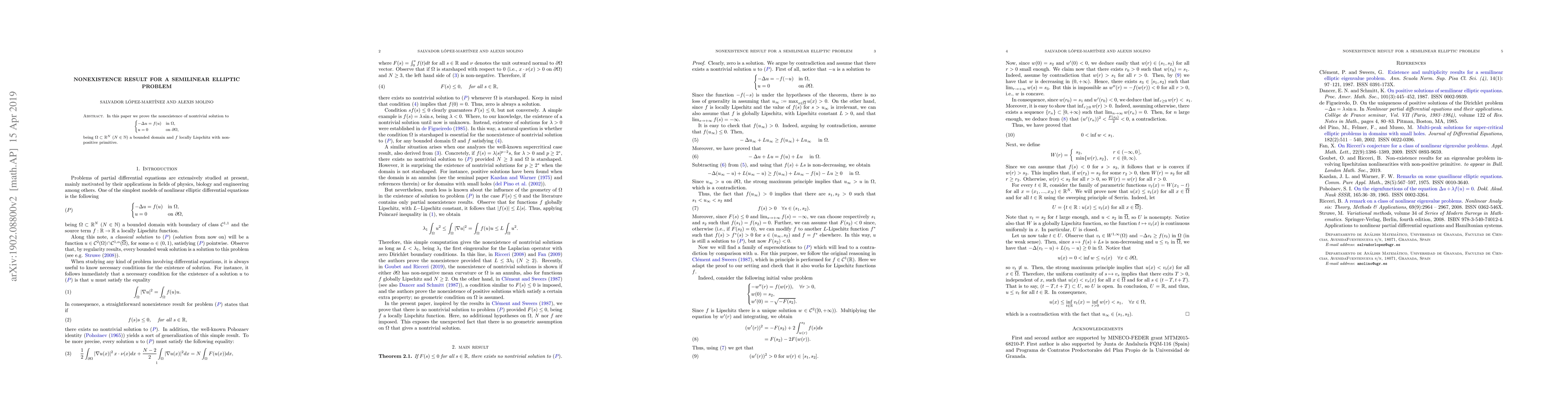 In this paper we prove the nonexistence of nontrivial solution to \begin{equation*} \begin{cases} -\Delta u =f(u) &\text{in }\Omega, \\ u=0 &\text{on } \partial \Omega, \end{cases} \end{equation*} being $\Omega \subset \mathbb{R}^N$ ($N\in \mathbb{N}$) a bounded domain and $f$ locally Lispchitz with non-positive primitive.