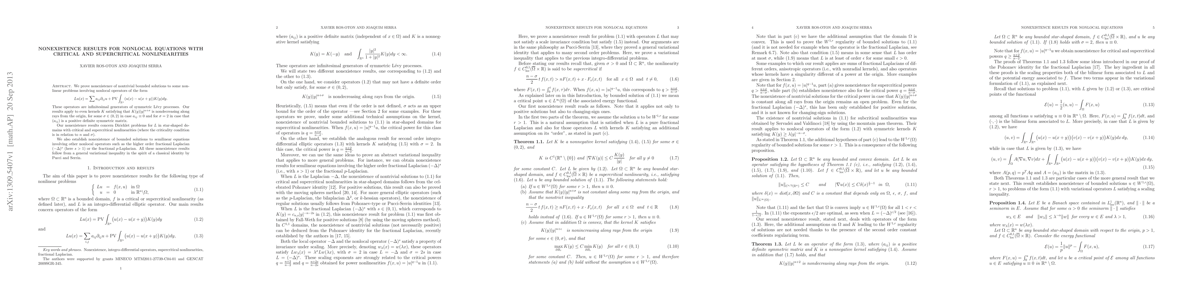 We prove nonexistence of nontrivial bounded solutions to some nonlinear problems involving nonlocal operators of the form \[Lu(x)=\sum a_{ij}\partial_{ij}u+{\rm PV}\int_{\R^n}(u(x)-u(x+y))K(y)dy.\] These operators are infinitesimal generators of symmetric L\'evy processes. Our results apply to even kernels $K$ satisfying that $K(y)|y|^{n+\sigma}$ is nondecreasing along rays from the origin, for some $\sigma\in(0,2)$ in case $a_{ij}\equiv0$ and for $\sigma=2$ in case that $(a_{ij})$ is a positive definite symmetric matrix. Our nonexistence results concern Dirichlet problems for $L$ in star-shaped domains with critical and supercritical nonlinearities (where the criticality condition is in relation to $n$ and $\sigma$). We also establish nonexistence of bounded solutions to semilinear equations involving other nonlocal operators such as the higher order fractional Laplacian $(-\Delta)^s$ (here $s>1$) or the fractional $p$-Laplacian. All these nonexistence results follow from a general variational inequality in the spirit of a classical identity by Pucci and Serrin.