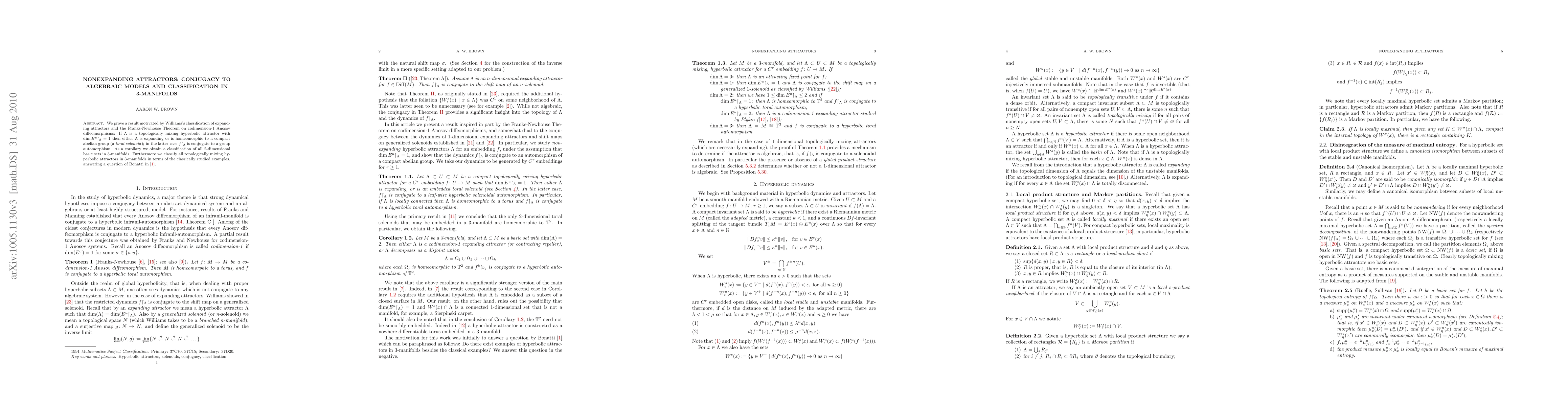 This paper proves that mixing hyperbolic attractors with 1-dimensional unstable manifolds are either expanding or homeomorphic to a toral solenoid, with the latter case being conjugate to a group automorphism. It also classifies 2-dimensional basic sets and hyperbolic attractors in 3-manifolds based on classical examples.