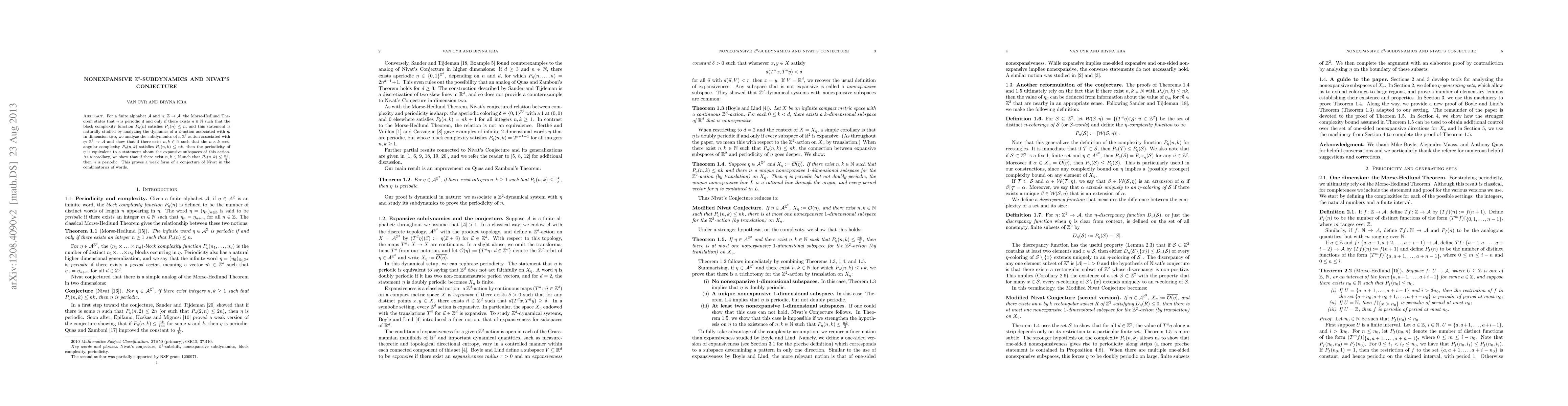 For a finite alphabet $\A$ and $\eta\colon \Z\to\A$, the Morse-Hedlund Theorem states that $\eta$ is periodic if and only if there exists $n\in\N$ such that the block complexity function $P_\eta(n)$ satisfies $P_\eta(n)\leq n$, and this statement is naturally studied by analyzing the dynamics of a $\Z$-action associated to $\eta$. In dimension two, we analyze the subdynamics of a $\ZZ$-action associated to $\eta\colon\ZZ\to\A$ and show that if there exist $n,k\in\N$ such that the $n\times k$ rectangular complexity $P_{\eta}(n,k)$ satisfies $P_{\eta}(n,k)\leq nk$, then the periodicity of $\eta$ is equivalent to a statement about the expansive subspaces of this action. As a corollary, we show that if there exist $n,k\in\N$ such that $P_{\eta}(n,k)\leq \frac{nk}{2}$, then $\eta$ is periodic. This proves a weak form of a conjecture of Nivat in the combinatorics of words.