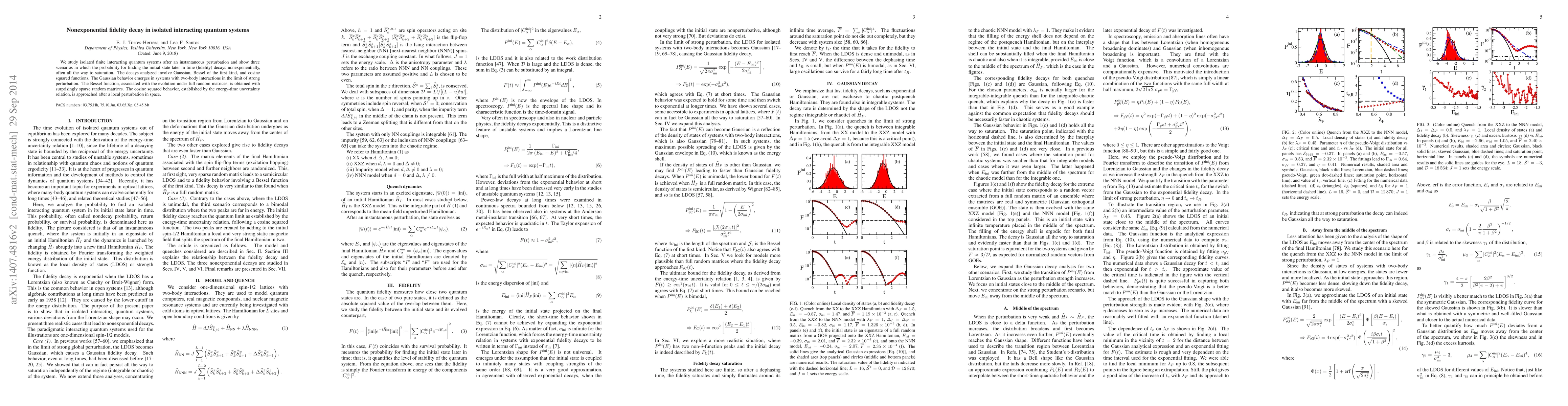 We study isolated finite interacting quantum systems after an instantaneous perturbation and show three scenarios in which the probability for finding the initial state later in time (fidelity) decays nonexponentially, often all the way to saturation. The decays analyzed involve Gaussian, Bessel of the first kind, and cosine squared functions. The Gaussian behavior emerges in systems with two-body interactions in the limit of strong perturbation. The Bessel function, associated with the evolution under full random matrices, is obtained with surprisingly sparse random matrices. The cosine squared behavior, established by the energy-time uncertainty relation, is approached after a local perturbation in space.
