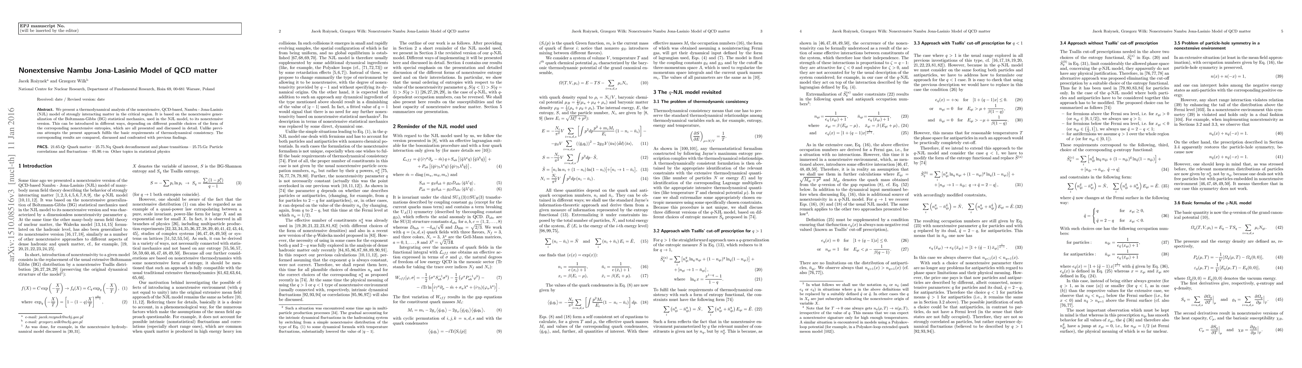 This paper revisits a nonextensive QCD-based Nambu Jona-Lasinio model, incorporating Tsallis statistics for thermodynamic consistency. Various forms of nonextensive entropies are explored and compared to previous results.
