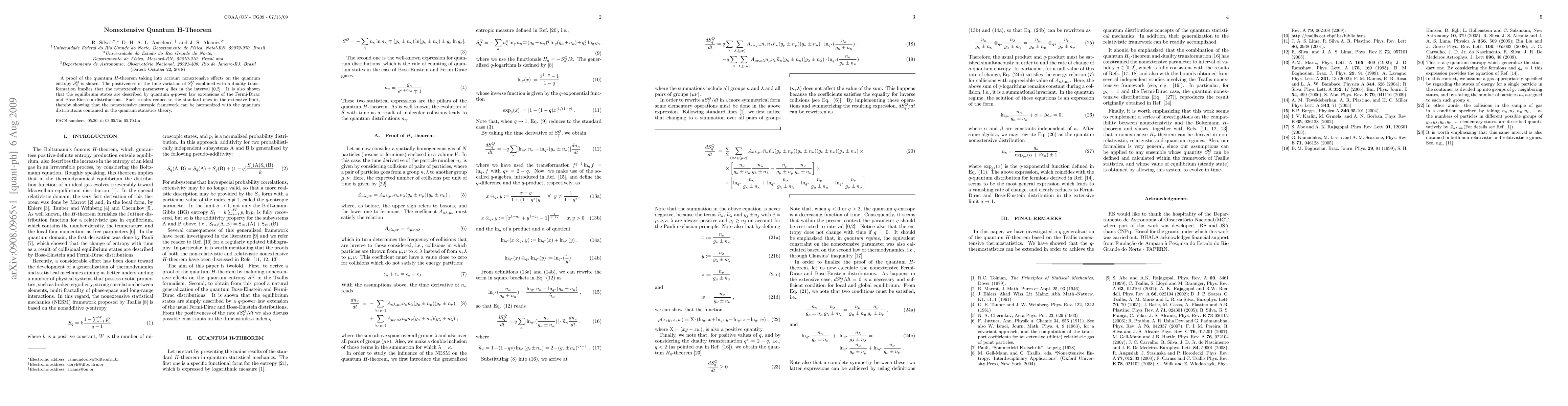 This paper proves a quantum $H$-theorem considering nonextensive effects on quantum entropy $S^Q_q$, demonstrating that the nonextensive parameter $q$ lies between 0 and 2. It also shows that equilibrium states follow quantum $q$-power law extensions of Fermi-Dirac and Bose-Einstein distributions, harmonizing with standard quantum statistics in the extensive limit.
