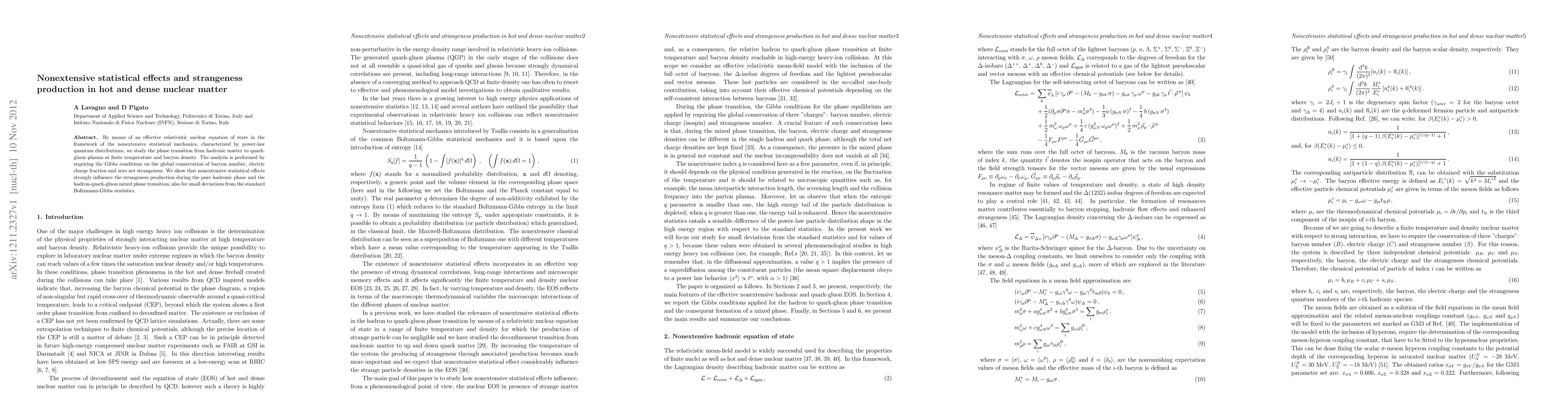 This paper investigates the phase transition from hadronic to quark-gluon plasma using nonextensive statistical mechanics, revealing that nonextensive effects significantly impact strangeness production, even with slight deviations from standard statistics. The study employs an effective relativistic nuclear equation of state and Gibbs conditions to analyze the transition.