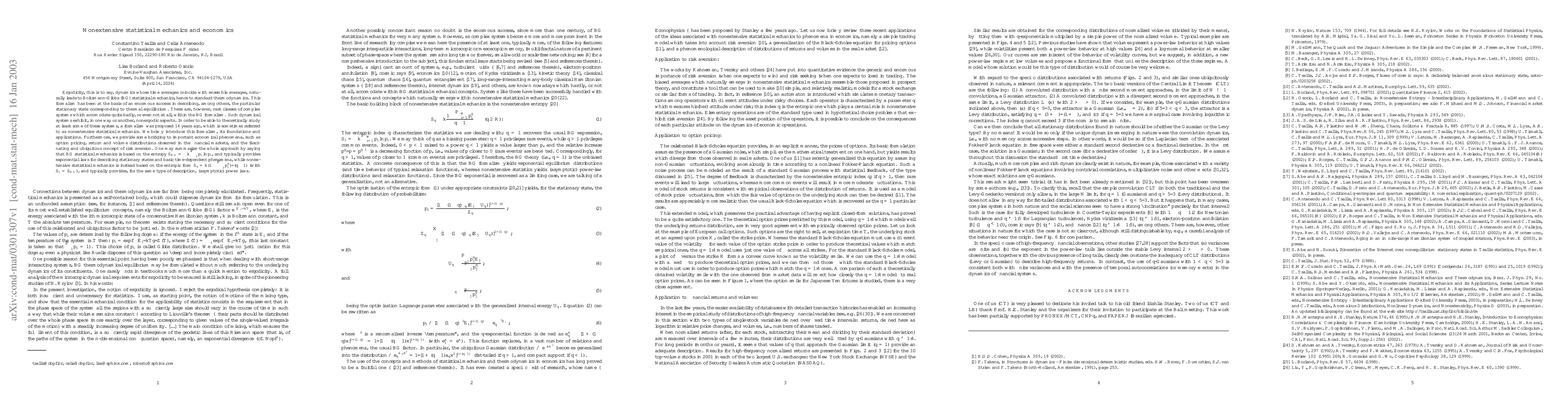 This paper introduces nonextensive statistical mechanics, a formalism that extends beyond Boltzmann-Gibbs statistical mechanics to describe complex systems that do not conform to standard thermodynamics. It applies this approach to economic phenomena, including option pricing, return and volume distributions, and risk aversion, showing that it can provide power laws instead of exponential laws for better fitting observed data.