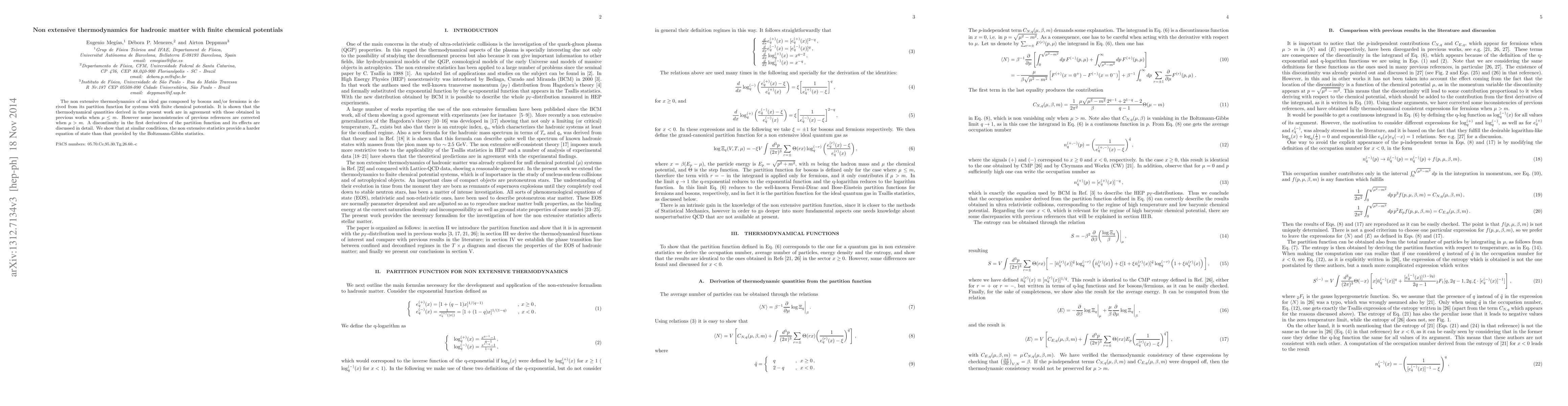 This paper derives nonextensive thermodynamics for hadrons with finite chemical potentials, correcting inconsistencies in previous works when the chemical potential exceeds the mass. It highlights a discontinuity in the first derivatives of the partition function and demonstrates that nonextensive statistics yield a harder equation of state compared to Boltzmann-Gibbs statistics.