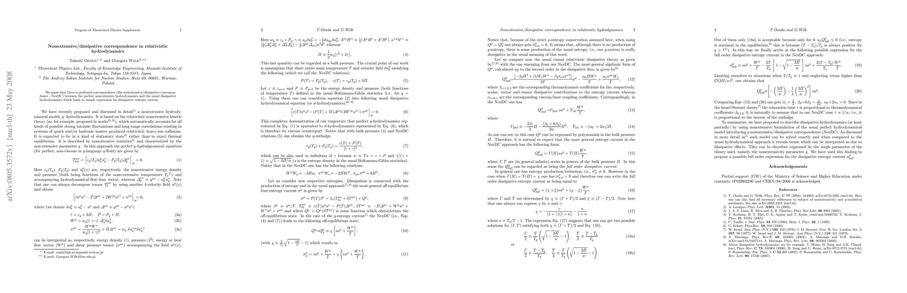 Summary: This paper establishes the nonextensive/dissipative correspondence (NexDC) between perfect nonextensive hydrodynamics and traditional dissipative hydrodynamics, leading to a straightforward expression for the dissipative entropy current.