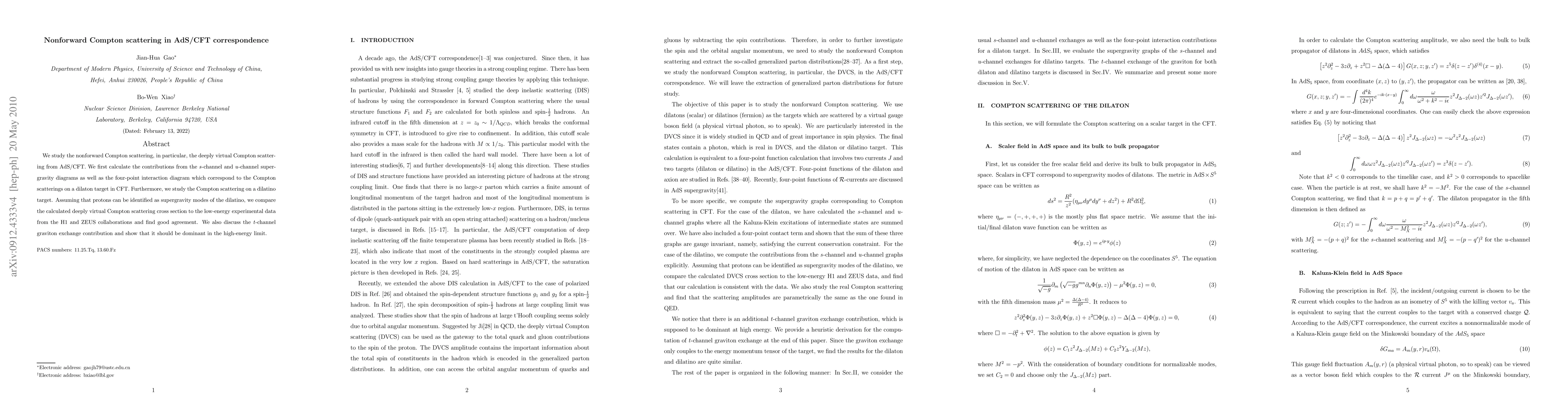 The research introduces a unique perspective on nonforward Compton scattering by leveraging AdS/CFT correspondence, identifying the t-channel graviton exchange as dominant in high-energy limits, and comparing results with experimental data from H1 and ZEUS collaborations.