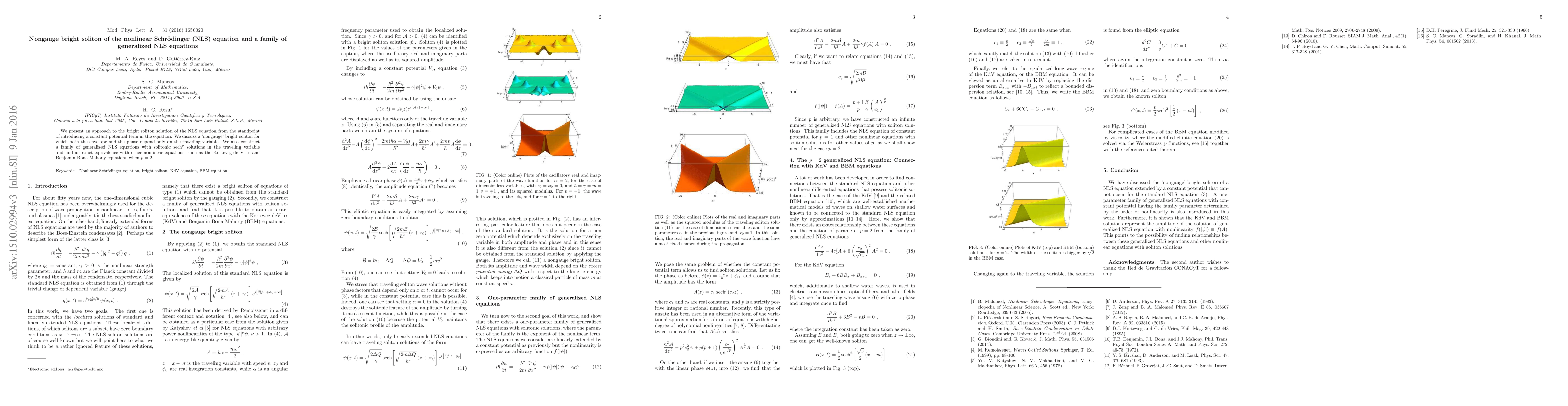 This paper explores the bright soliton solution of the nonlinear Schrödinger equation by introducing a constant potential term, presenting a 'nongauge' soliton whose envelope and phase depend solely on the traveling variable. It also constructs a family of generalized NLS equations with solitonic sech^p solutions and demonstrates their equivalence to other nonlinear equations like the KdV and BBM equations when p=2.