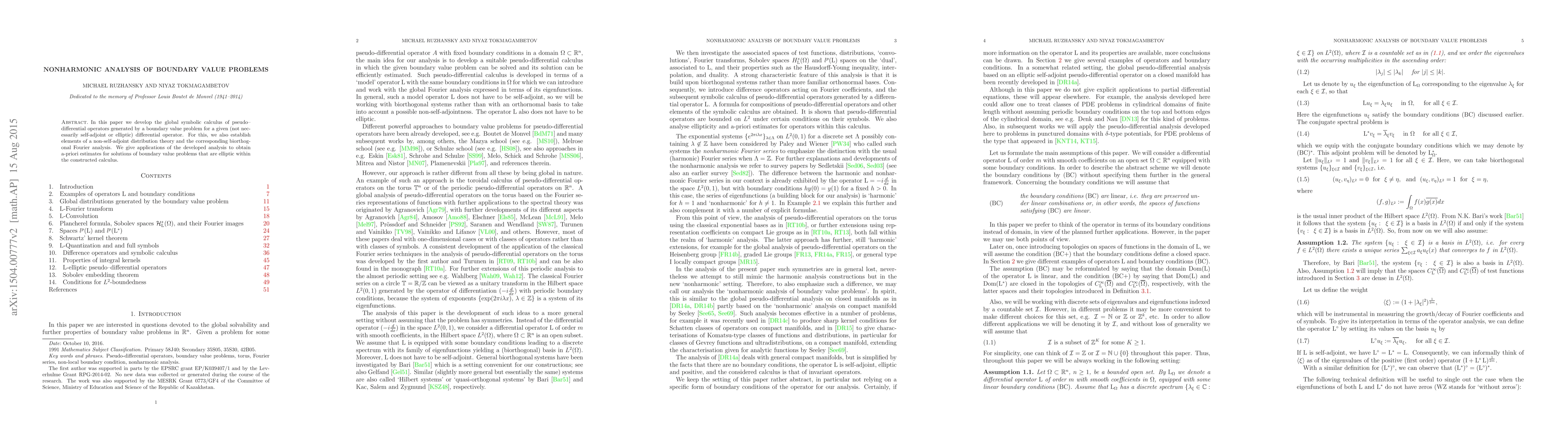 In this paper we develop the global symbolic calculus of pseudo-differential operators generated by a boundary value problem for a given (not necessarily self-adjoint or elliptic) differential operator. For this, we also establish elements of a non-self-adjoint distribution theory and the corresponding biorthogonal Fourier analysis. We give applications of the developed analysis to obtain a-priori estimates for solutions of operators that are elliptic within the constructed calculus.