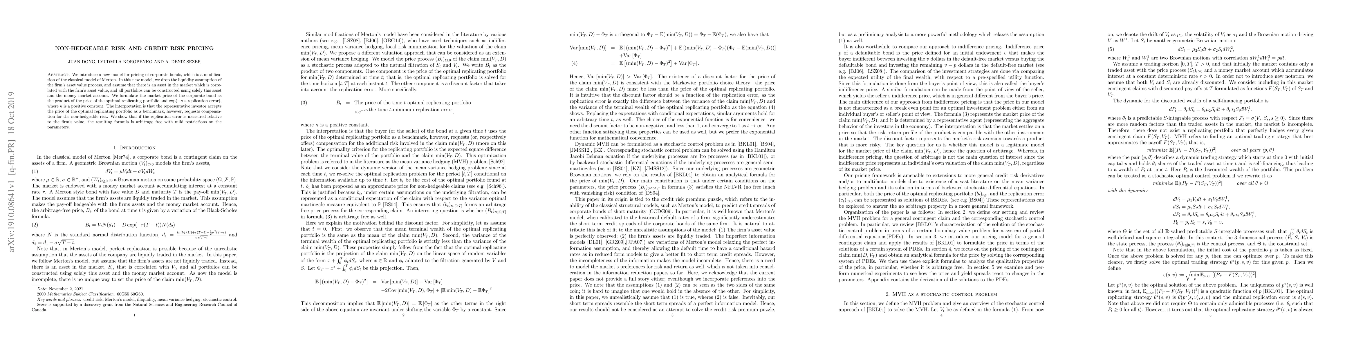 This paper proposes a novel model for pricing corporate bonds, deviating from the classical Merton model by incorporating nonhedgeable risk. The model assumes a liquid, correlated market asset and derives the bond price as the optimal replicating portfolio price multiplied by exp(- kappa x replication error), where kappa is a positive constant. The formula is shown to be arbitrage-free under mild conditions when error is gauged against firm value.