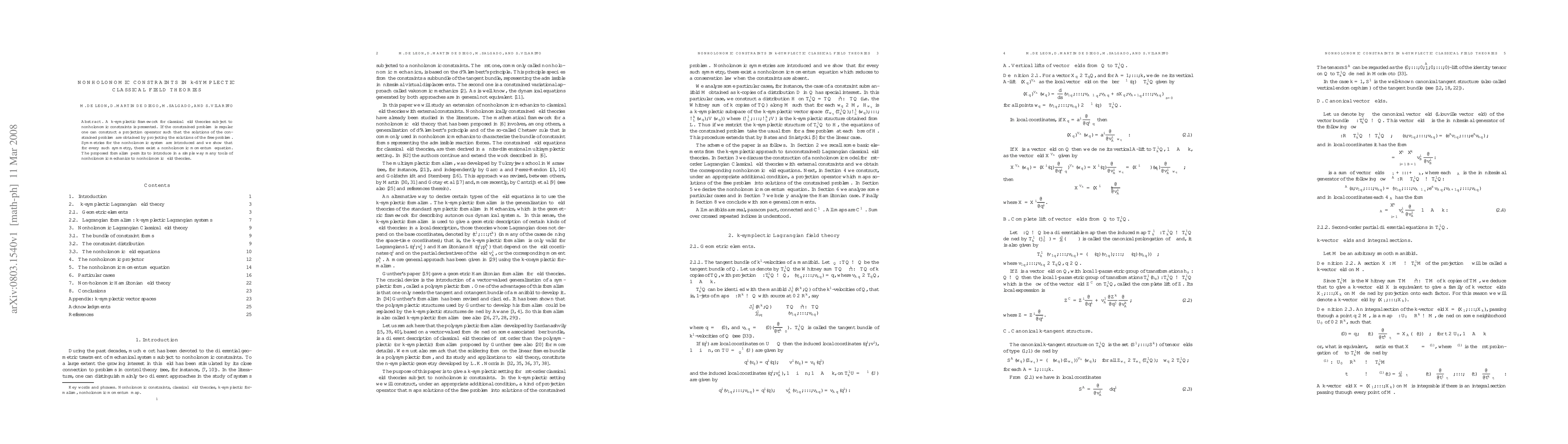 This paper introduces a $k$-symplectic framework for classical field theories with nonholonomic constraints, demonstrating the construction of a projection operator for regular constrained problems. It also explores symmetries in nonholonomic systems and their associated momentum equations, facilitating the integration of nonholonomic mechanics tools into field theories.