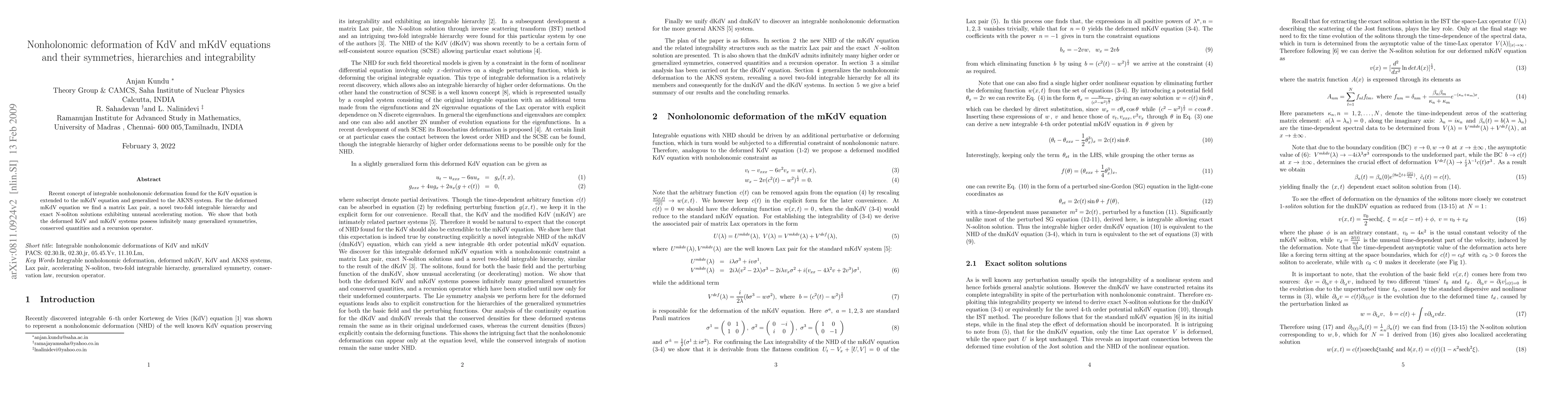 This paper extends the concept of integrable nonholonomic deformation to the modified KdV (mKdV) equation and the AKNS system, revealing a matrix Lax pair, a novel integrable hierarchy, and exact N-soliton solutions with unique accelerating motion. It demonstrates that both the deformed KdV and mKdV systems exhibit infinite generalized symmetries, conserved quantities, and a recursion operator.
