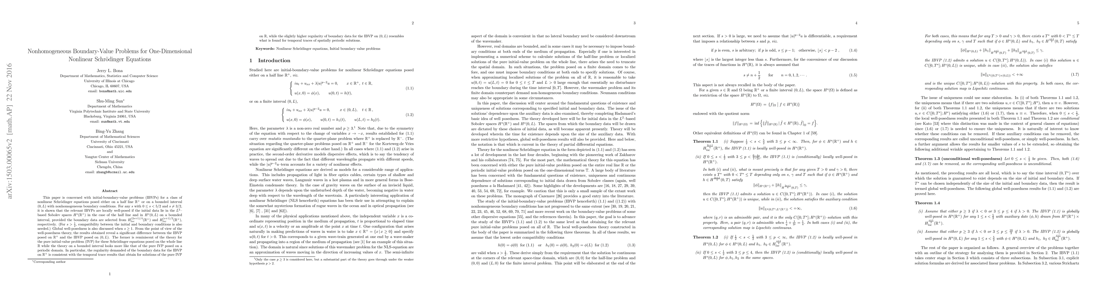 This paper is concerned with initial-boundary-value problems (IBVPs) for a class of nonlinear Schr\"odinger equations posed either on a half line $\mathbb{R}^+$ or on a bounded interval $(0, L)$ with nonhomogeneous boundary conditions. For any $s$ with $0\leq s < 5/2$ and $s \not = 3/2$, it is shown that the relevant IBVPs are locally well-posed if the initial data lie in the $L^2$--based Sobolev spaces $H^s(\mathbb{R}^+) $ in the case of the half line and in $H^s (0, L)$ on a bounded interval, provided the boundary data are selected from $H^{(2s+1)/4}_{loc} (\mathbb{R}^+)$ and $H^{(s+ 1) /2}_{loc} (\mathbb{R}^+)$, respectively. (For $s > \frac12$, compatibility between the initial and boundary conditions is also needed.) Global well-posedness is also discussed when $s \ge 1$. From the point of view of the well-posedness theory, the results obtained reveal a significant difference between the IBVP posed on $\mathbb{R}^+$ and the IBVP posed on $(0,L)$. The former is reminiscent of the theory for the pure initial-value problem (IVP) for these Schr\"odinger equations posed on the whole line $\mathbb{R}$ while the theory on a bounded interval looks more like that othe pure IVP posed on a periodic domain. In particular, the regularity demanded of the boundary data for the IBVP on $\mathbb{R}^+$ is consistent with the temporal trace results that obtain for solutions of the pure IVP on $\mathbb{R}$, while the slightly higher regularity of boundary data for the IBVP on $(0, L)$ resembles what is found for temporal traces of spatially periodic solutions.
