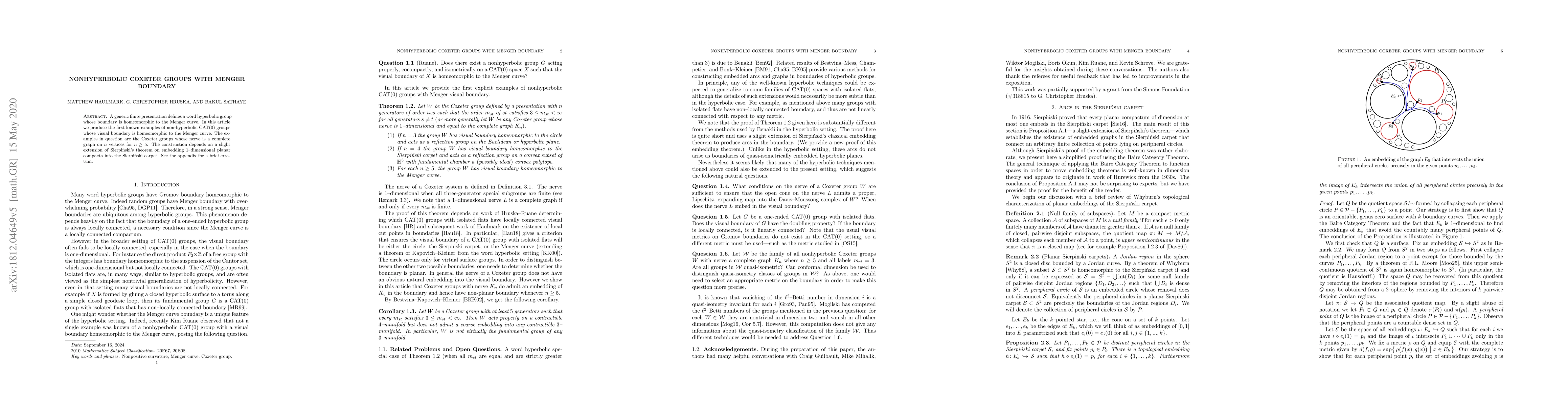 This paper presents the first examples of non-hyperbolic $CAT(0)$ Coxeter groups with a visual boundary homeomorphic to the Menger curve, extending Sierpińsky's embedding theorem for planar compacta. An erratum is included in the appendix.