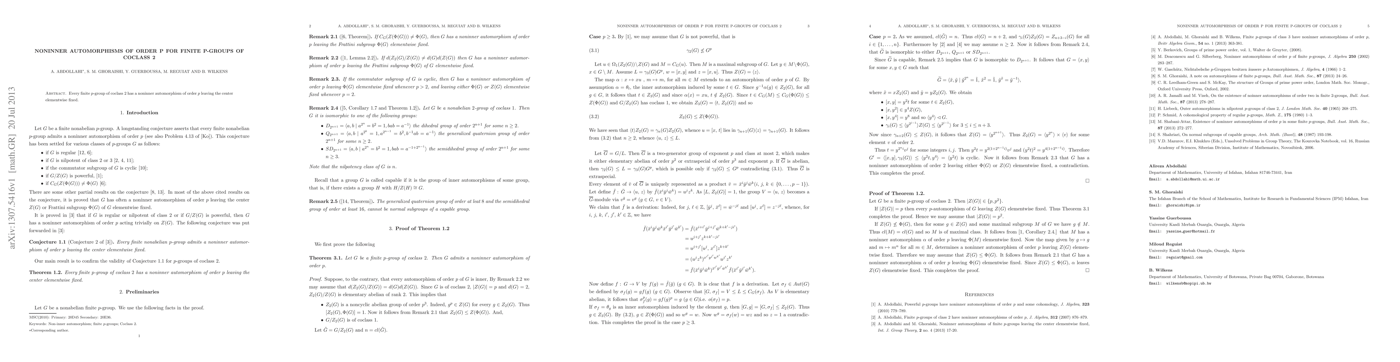 Summary: This paper demonstrates that any finite $p$-group with coclass 2 possesses a noninner automorphism of order $p$ that fixes the center elementwise. This finding provides insight into the structure and automorphisms of such $p$-groups.