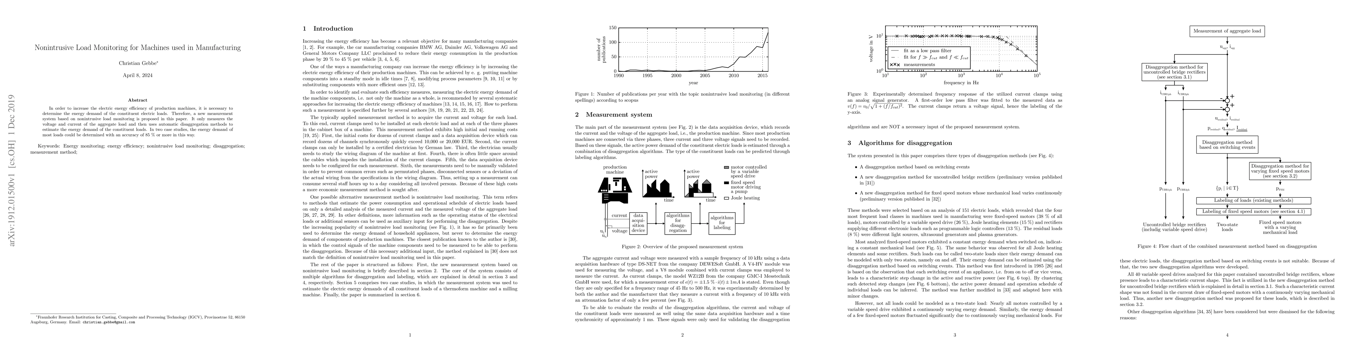 A new nonintrusive load monitoring system can accurately estimate energy demand of individual loads in manufacturing machines with an accuracy of 85% or higher. The system measures aggregate voltage and current to disaggregate loads.