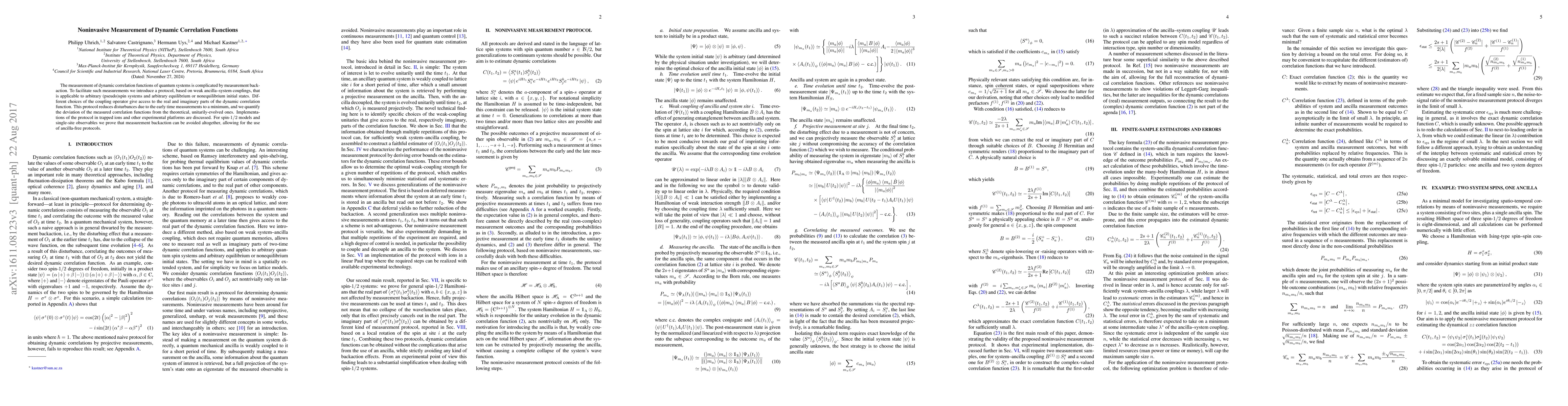 The paper presents a novel protocol for noninvasive measurement of dynamic correlation functions, leveraging weak ancilla-system couplings to reduce measurement backaction and enabling the separate measurement of real and imaginary parts of the correlation function.