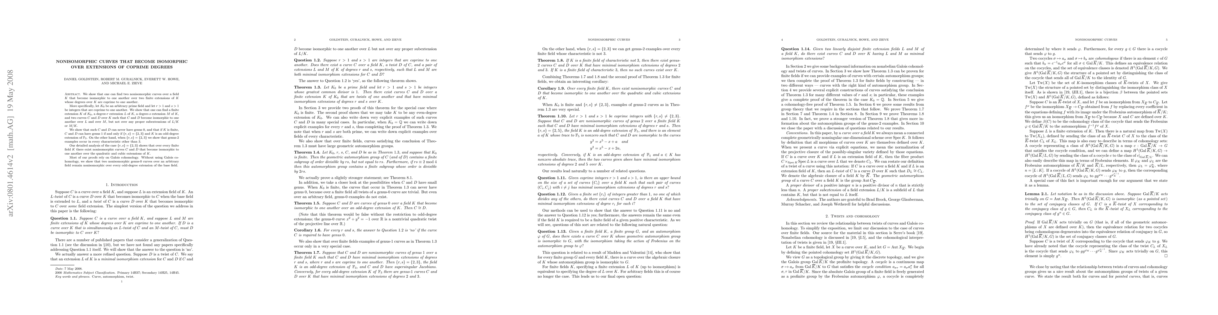 This paper demonstrates the existence of two nonisomorphic curves over a field K that become isomorphic over two finite coprime extensions of K. It specifically explores cases where the extensions have degrees r and s, proving that such curves can never have genus 0 and can only have genus 1 under certain conditions. The analysis focuses on the case where r and s are 2 and 3, revealing genus-2 examples in all characteristics except 3.