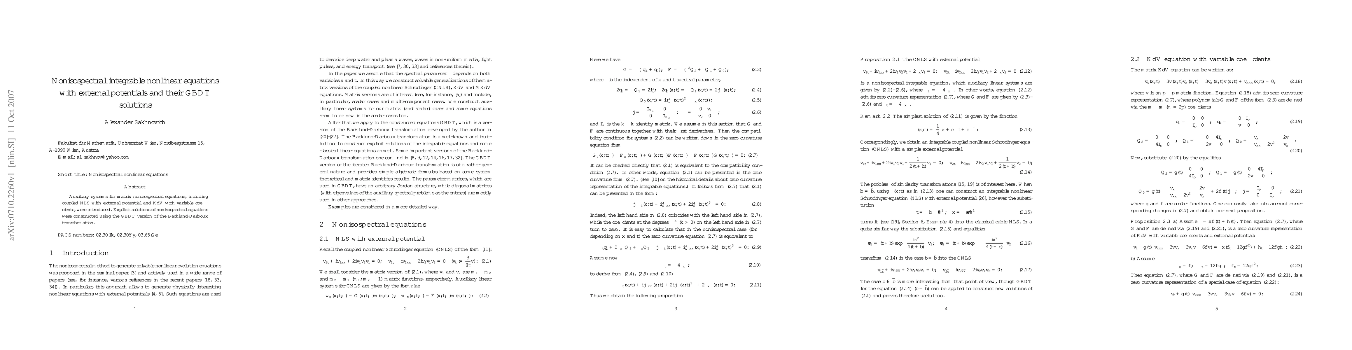 Auxiliary systems for matrix nonisospectral equations, including coupled NLS with external potential and KdV with variable coefficients, were introduced. Explicit solutions of nonisospectral equations were constructed using the GBDT version of the B\"acklund-Darboux transformation.