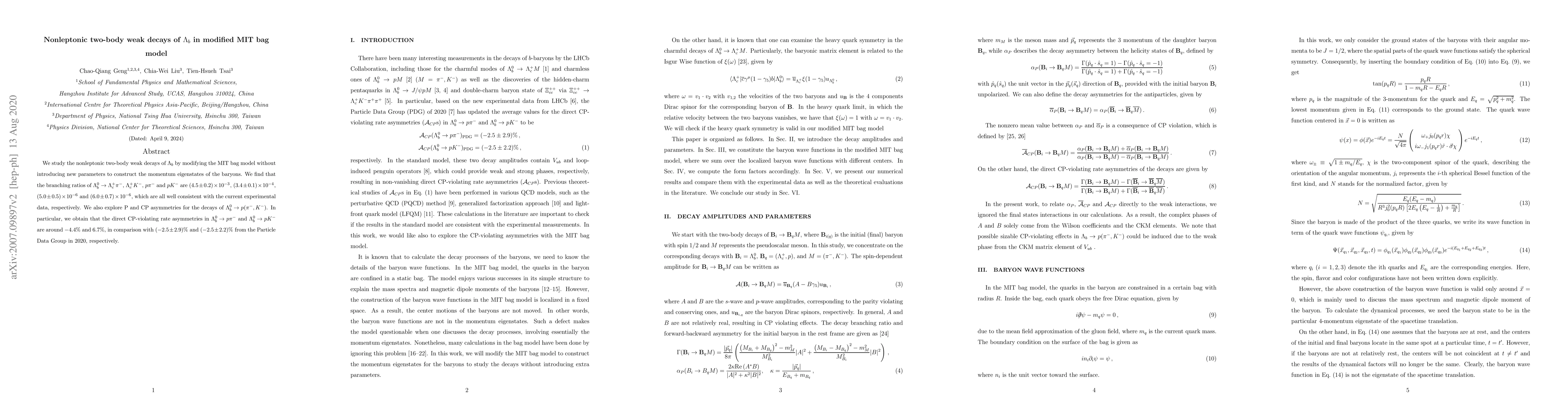 We study the nonleptonic two-body weak decays of $\Lambda_b$ by modifying the MIT bag model without introducing new parameters to construct the momentum eigenstates of the baryons. We find that the branching ratios of $\Lambda_b^0 \to \Lambda_c^+ \pi^-$, $\Lambda_c^+ K^-$, $p \pi^-$ and $pK^-$ are $(4.5\pm0.2)\times 10^{-3}$, $(3.4\pm 0.1)\times 10^{-4}$, $(5.0\pm 0.5)\times 10^{-6}$ and $(6.0\pm 0.7) \times 10^{-6}$, which are all well consistent with the current experimental data, respectively. We also explore P and CP asymmetries for the decays of $\Lambda_b^0 \to p (\pi^-,K^-)$. In particular, we obtain that the direct CP-violating rate asymmetries in $\Lambda_b^0 \to p \pi^-$ and $\Lambda_b^0 \to p K^-$ are around $-4.4\%$ and $6.7\%$, in comparison with $(-2.5\pm2.9)\%$ and $(-2.5\pm2.2)\%$ from the Particle Data Group in 2020, respectively.