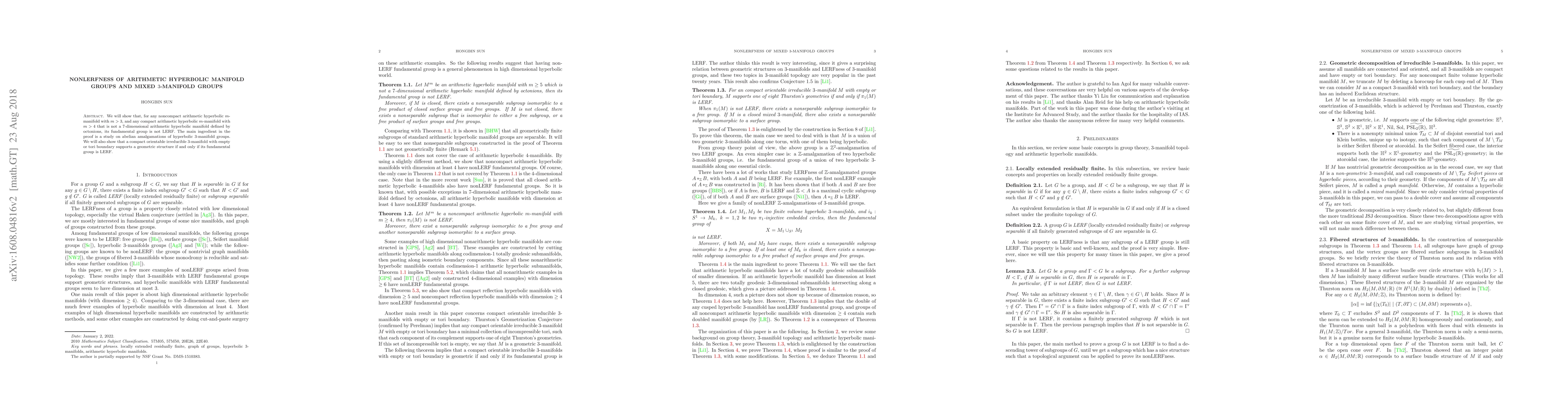 This paper demonstrates that the fundamental groups of certain noncompact and compact arithmetic hyperbolic manifolds are not LERF (not Locally Extended Residually Finite). The proof leverages a detailed analysis of abelian amalgamations of hyperbolic 3-manifold groups, and it also establishes a connection between the LERF property and the existence of geometric structures in compact orientable irreducible 3-manifolds.