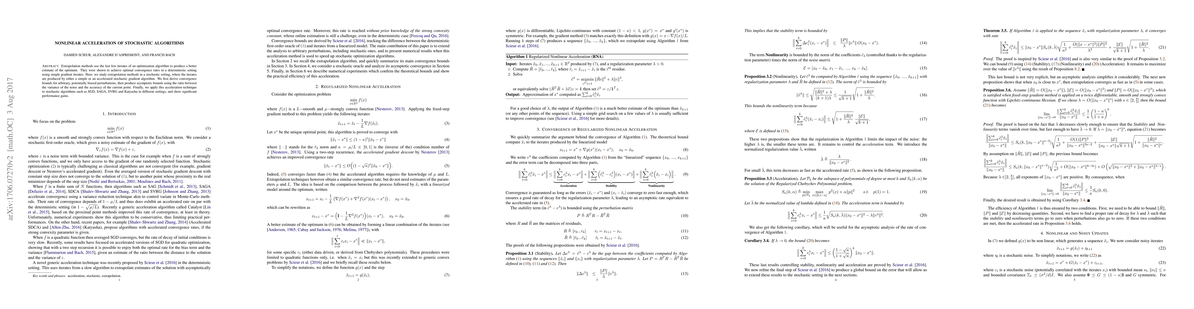 Extrapolation methods use the last few iterates of an optimization algorithm to produce a better estimate of the optimum. They were shown to achieve optimal convergence rates in a deterministic setting using simple gradient iterates. Here, we study extrapolation methods in a stochastic setting, where the iterates are produced by either a simple or an accelerated stochastic gradient algorithm. We first derive convergence bounds for arbitrary, potentially biased perturbations, then produce asymptotic bounds using the ratio between the variance of the noise and the accuracy of the current point. Finally, we apply this acceleration technique to stochastic algorithms such as SGD, SAGA, SVRG and Katyusha in different settings, and show significant performance gains.