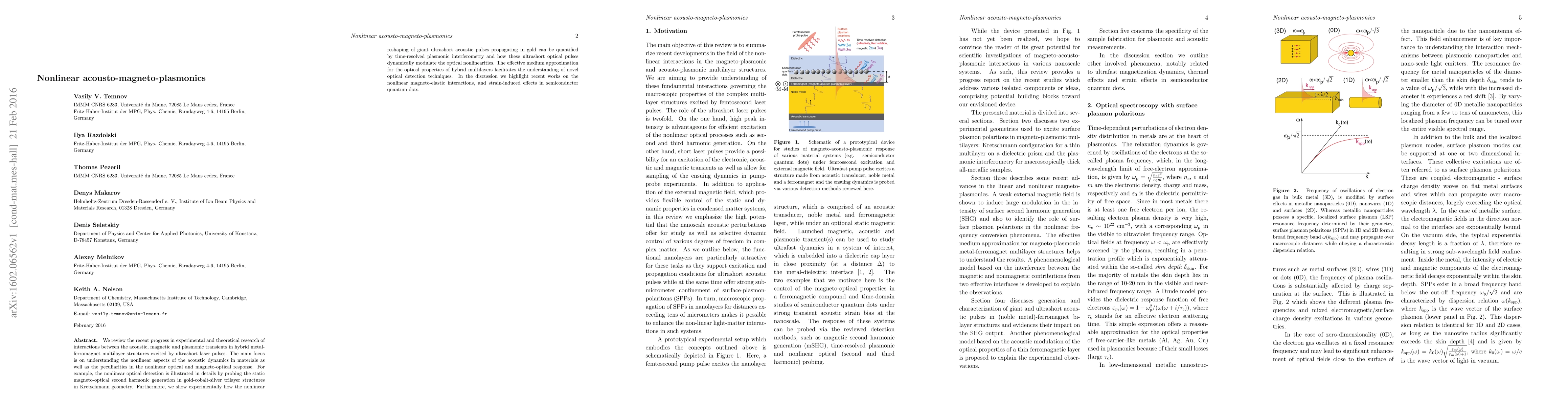 This paper reviews recent advances in the study of nonlinear interactions between acoustic, magnetic, and plasmonic transients in metal-ferromagnet multilayers, focusing on the nonlinear optical and magneto-optical responses. It highlights experimental techniques like time-resolved plasmonic interferometry and discusses the implications of nonlinear magneto-elastic interactions and strain-induced effects in semiconductor quantum dots.