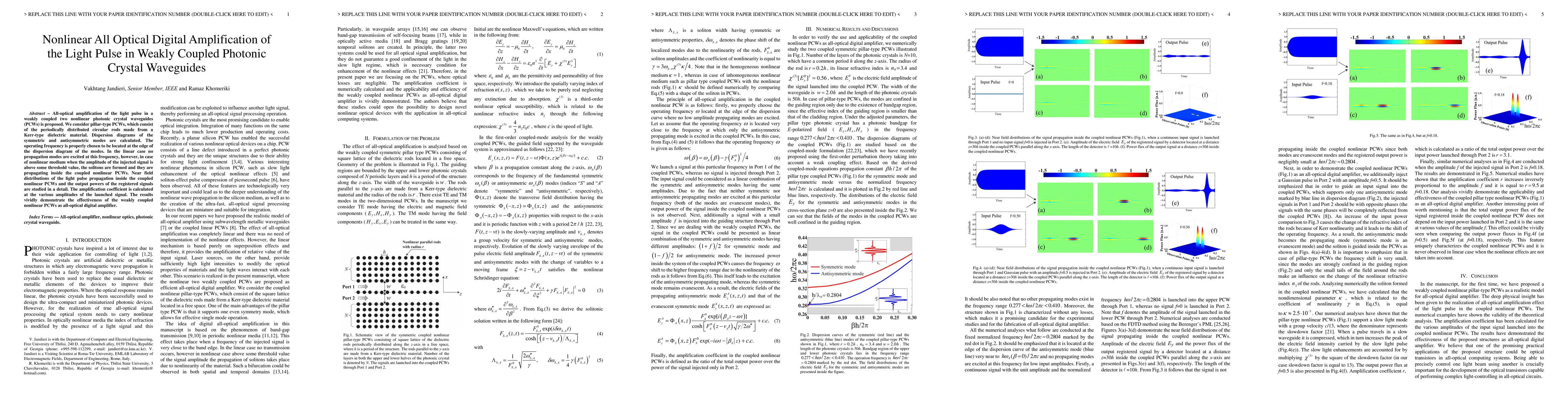 This paper proposes an all-optical digital amplifier using weakly coupled nonlinear photonic crystal waveguides, where solitons form and propagate when the signal amplitude exceeds a threshold. The study calculates the amplification coefficient at various signal amplitudes, demonstrating the effectiveness of the system.