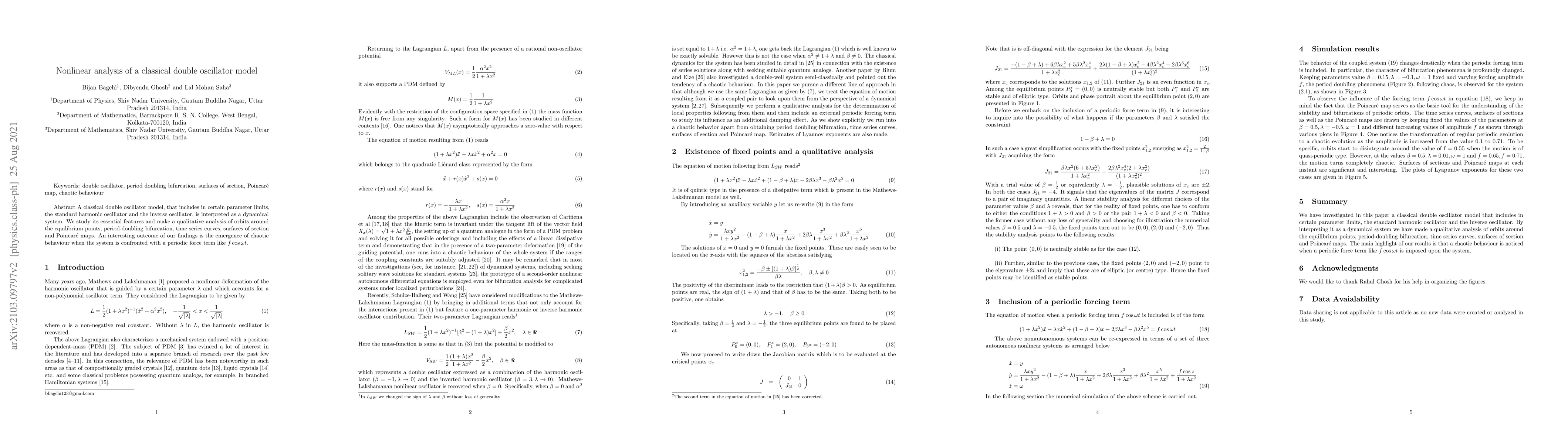 This paper conducts a nonlinear analysis of a classical double oscillator model, exploring its dynamical behavior, bifurcations, and chaotic responses, particularly when subjected to a periodic forcing term. The study reveals significant chaotic dynamics emerging under specific conditions.