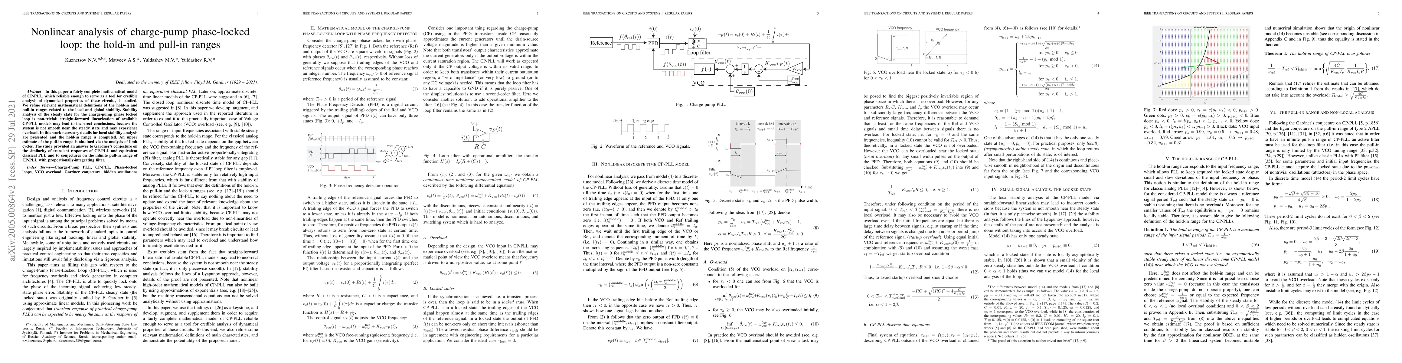 This paper develops a comprehensive mathematical model for charge-pump phase-locked loops (CP-PLL) to analyze their dynamical properties, focusing on the hold-in and pull-in ranges for local and global stability. It provides a detailed stability analysis and resolves Gardner's conjecture regarding CP-PLL transient responses.