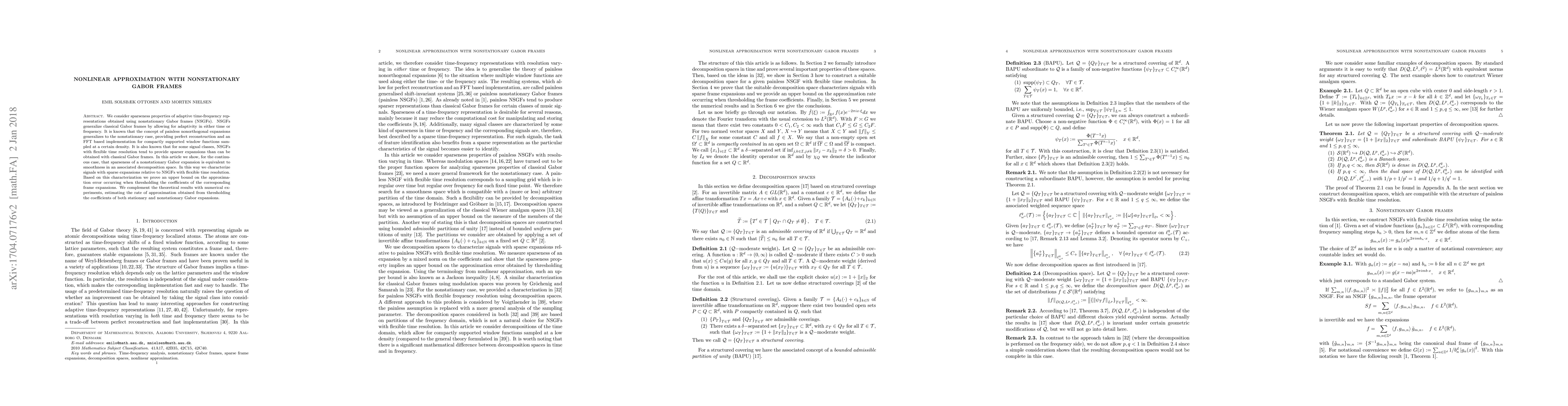 The research analyzes nonlinear approximation with nonstationary Gabor frames, demonstrating that sparseness of a nonstationary Gabor expansion corresponds to smoothness in an associated decomposition space. The authors prove an upper bound on the approximation error from thresholding coefficients and complement this with numerical experiments.