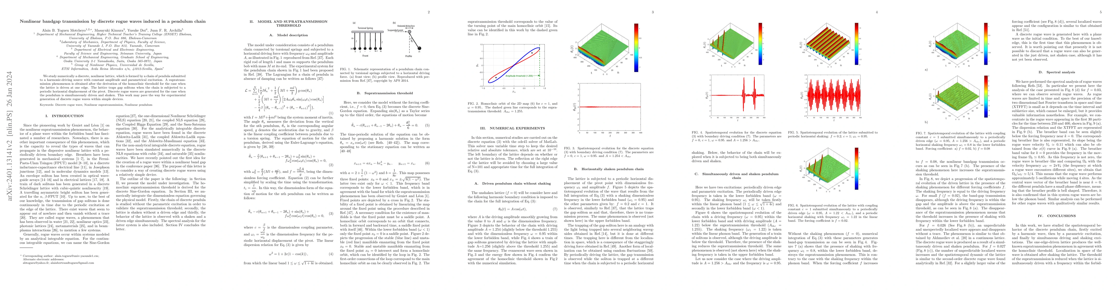 This paper numerically investigates a nonlinear pendulum chain driven by harmonic and parametric excitations, revealing supratransmission and the trapping of gap solitons. It also demonstrates the emergence of discrete rogue waves under simultaneous driving and shaking, potentially enabling their experimental generation in simple devices.