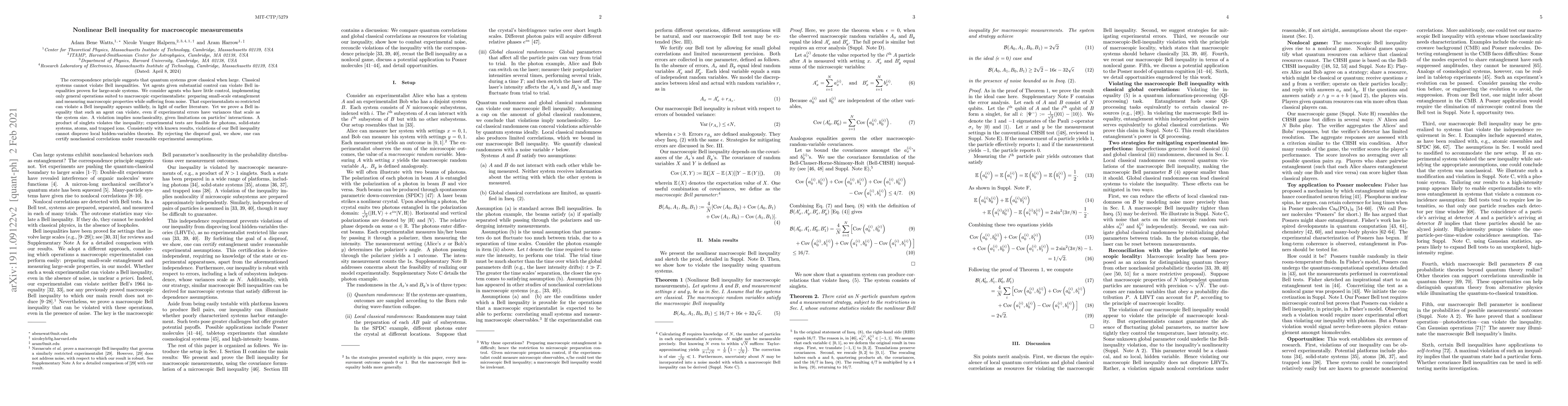 This paper proves a nonlinear Bell inequality that can be violated by macroscopic experimental agents with limited control, even amidst noise, indicating nonclassicality. Such violations, feasible for photons and other systems, certify nonclassical correlations without disproving local hidden-variable theories.