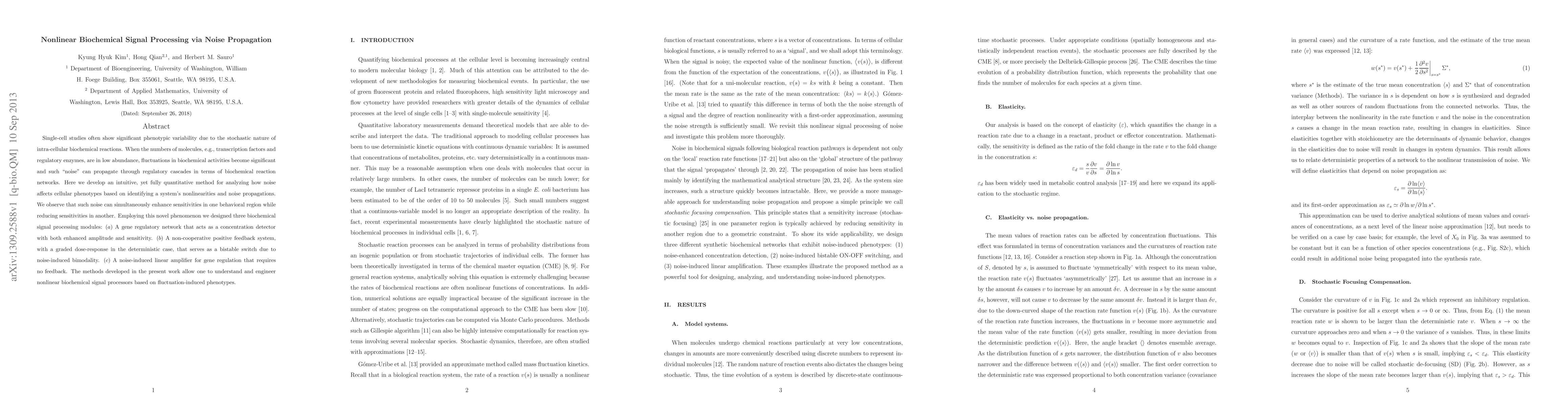 This paper develops a quantitative method to analyze how noise in low-abundance biochemical reactions influences cellular phenotypes through nonlinearities and noise propagation. It introduces three signal processing modules: a concentration detector gene regulatory network, a bistable switch via noise-induced bimodality, and a linear amplifier for gene regulation.