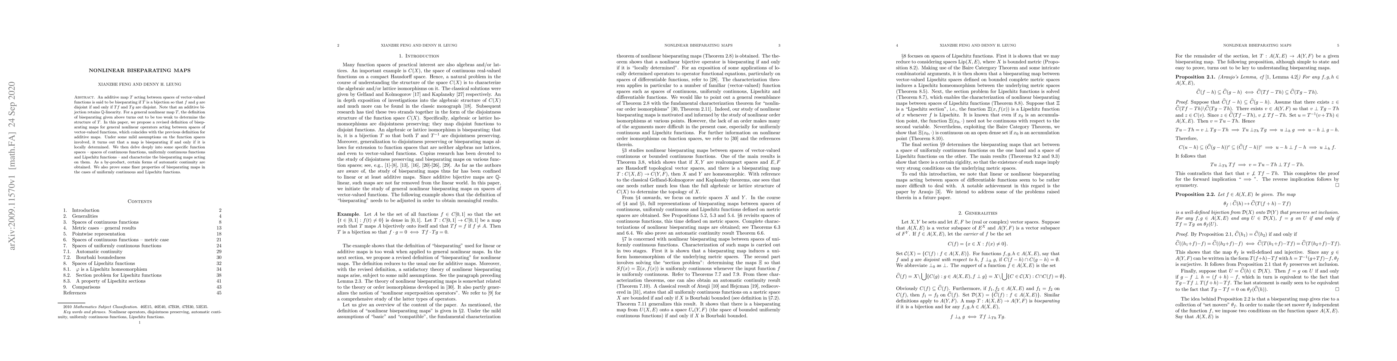 An additive map $T$ acting between spaces of vector-valued functions is said to be biseparating if $T$ is a bijection so that $f$ and $g$ are disjoint if and only if $Tf$ and $Tg$ are disjoint. Note that an additive bijection retains $\mathbb{Q}$-linearity. For a general nonlinear map $T$, the definition of biseparating given above turns out to be too weak to determine the structure of $T$. In this paper, we propose a revised definition of biseparating maps for general nonlinear operators acting between spaces of vector-valued functions, which coincides with the previous definition for additive maps. Under some mild assumptions on the function spaces involved, it turns out that a map is biseparating if and only if it is locally determined. We then delve deeply into some specific function spaces -- spaces of continuous functions, uniformly continuous functions and Lipschitz functions -- and characterize the biseparating maps acting on them. As a by-product, certain forms of automatic continuity are obtained. We also prove some finer properties of biseparating maps in the cases of uniformly continuous and Lipschitz functions.