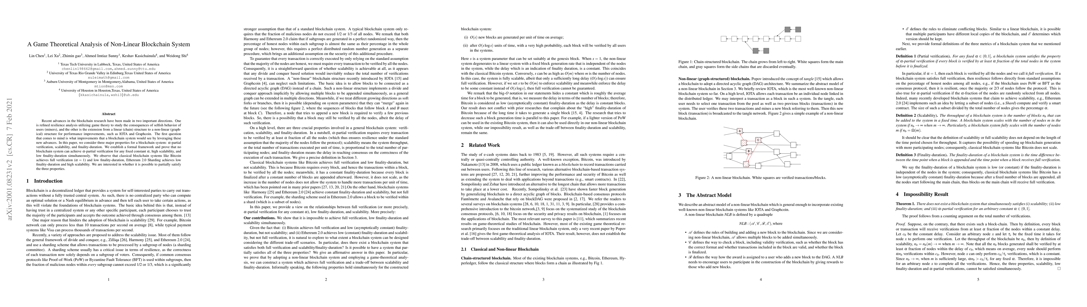 Recent advances in the blockchain research have been made in two important directions. One is refined resilience analysis utilizing game theory to study the consequences of selfish behaviors of users (miners), and the other is the extension from a linear (chain) structure to a non-linear (graphical) structure for performance improvements, such as IOTA and Graphcoin. The first question that comes to people's minds is what improvements that a blockchain system would see by leveraging these new advances. In this paper, we consider three major metrics for a blockchain system: full verification, scalability, and finality-duration. We { establish a formal framework and} prove that no blockchain system can achieve full verification, high scalability, and low finality-duration simultaneously. We observe that classical blockchain systems like Bitcoin achieves full verification and low finality-duration, Harmony and Ethereum 2.0 achieve low finality-duration and high scalability. As a complementary, we design a non-linear blockchain system that achieves full verification and scalability. We also establish, for the first time, the trade-off between scalability and finality-duration.