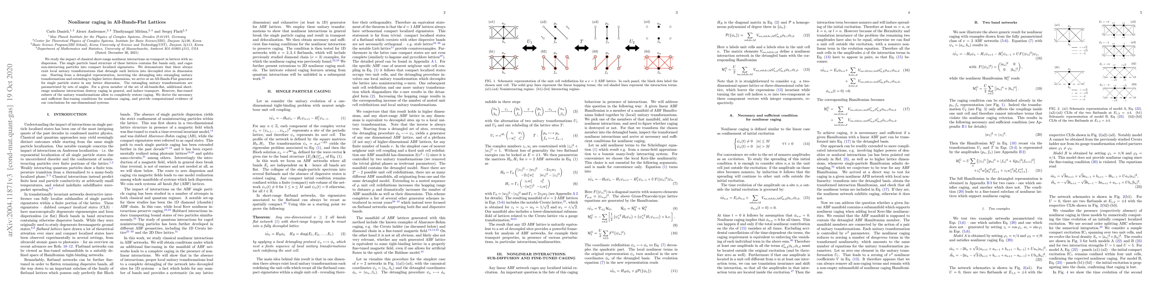 Researchers discovered a way to create lattices with no dispersion that can trap particles into localized states using short-range nonlinear interactions. However, fine-tuning of these interactions allows the restoration of caging, enabling transport in certain systems.