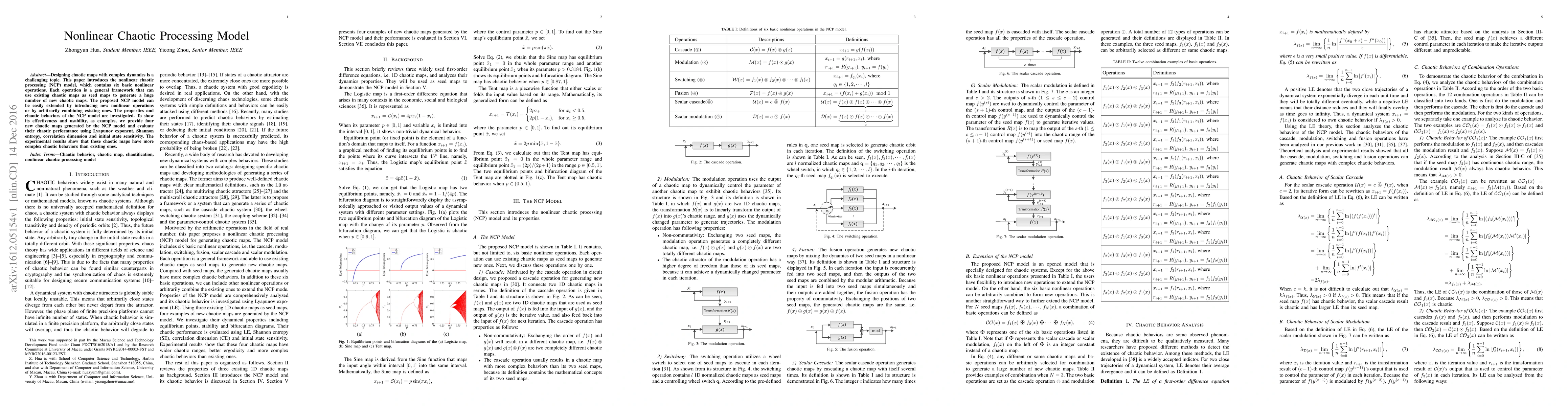 A new nonlinear chaotic processing model introduces six basic operations to generate a wide variety of complex chaotic maps, outperforming existing ones in terms of chaotic behavior.