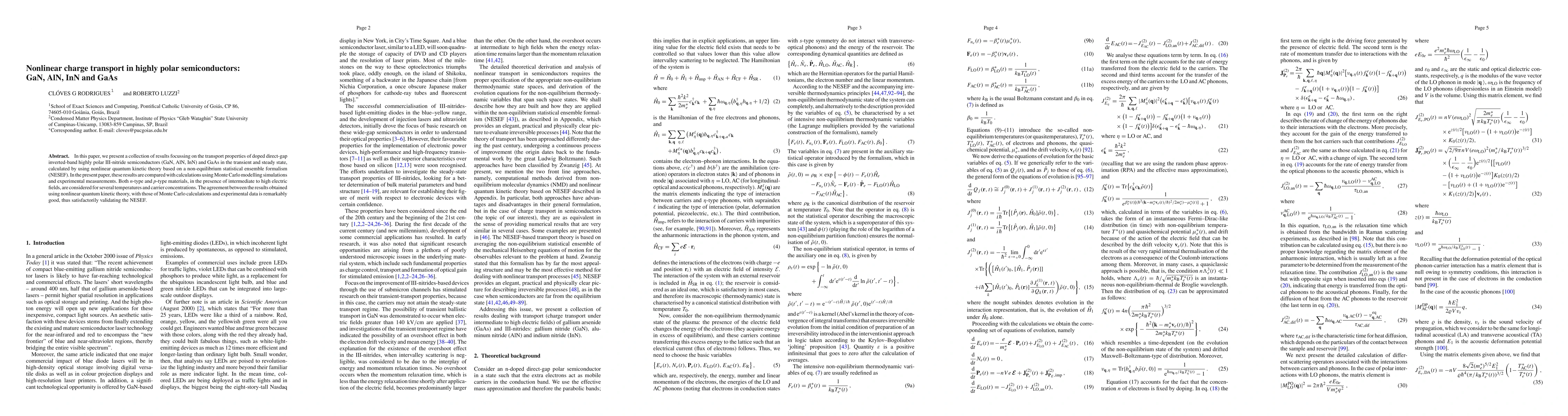 Researchers used a new method to study how charge moves in special semiconductors like GaN and GaAs under high electric fields, finding good agreement with existing experimental data.