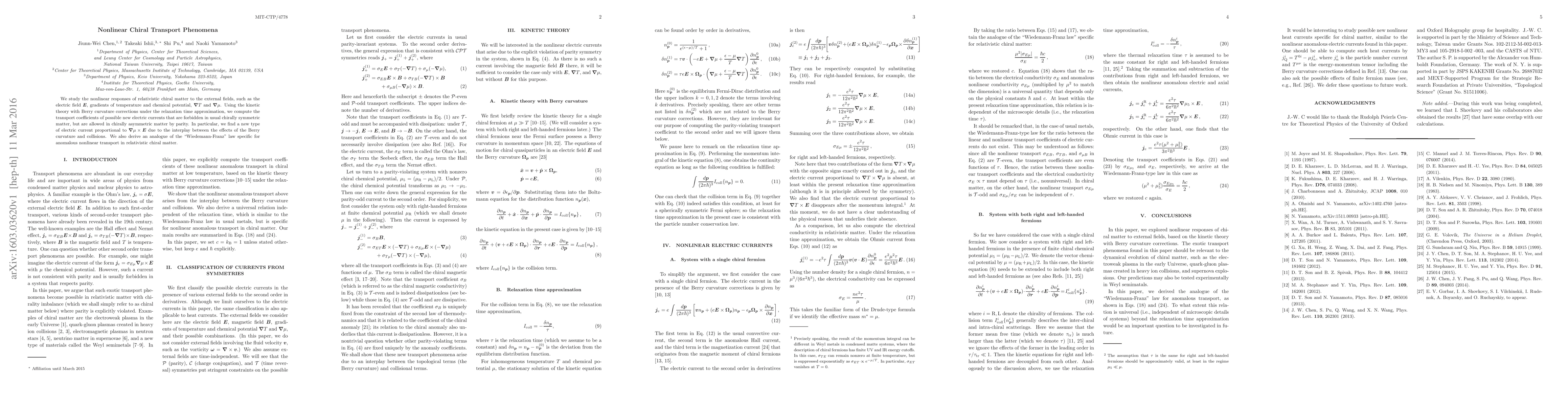 This paper investigates the nonlinear transport responses of relativistic chiral matter under external fields, revealing new electric currents enabled by chiral asymmetry. It identifies a novel electric current proportional to the cross product of temperature gradient and electric field, driven by the interplay between Berry curvature and collisions.