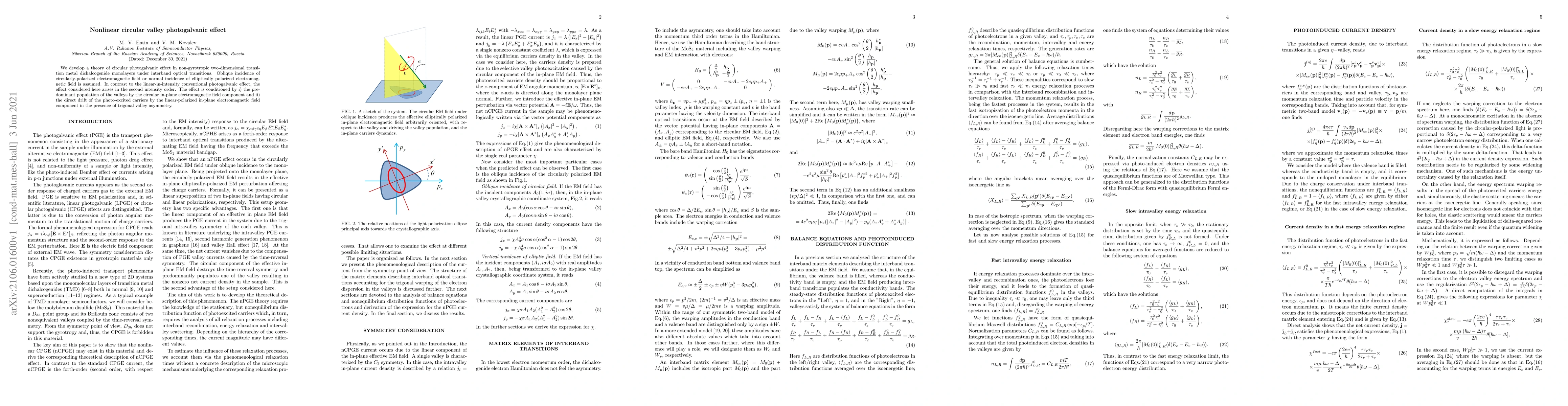 Summary: This paper proposes a nonlinear circular valley photogalvanic effect in non-gyrotropic 2D transition metal dichalcogenides, driven by either oblique circularly-polarized or normal elliptically-polarized light, arising from the second order of intensity and influenced by valley asymmetry.