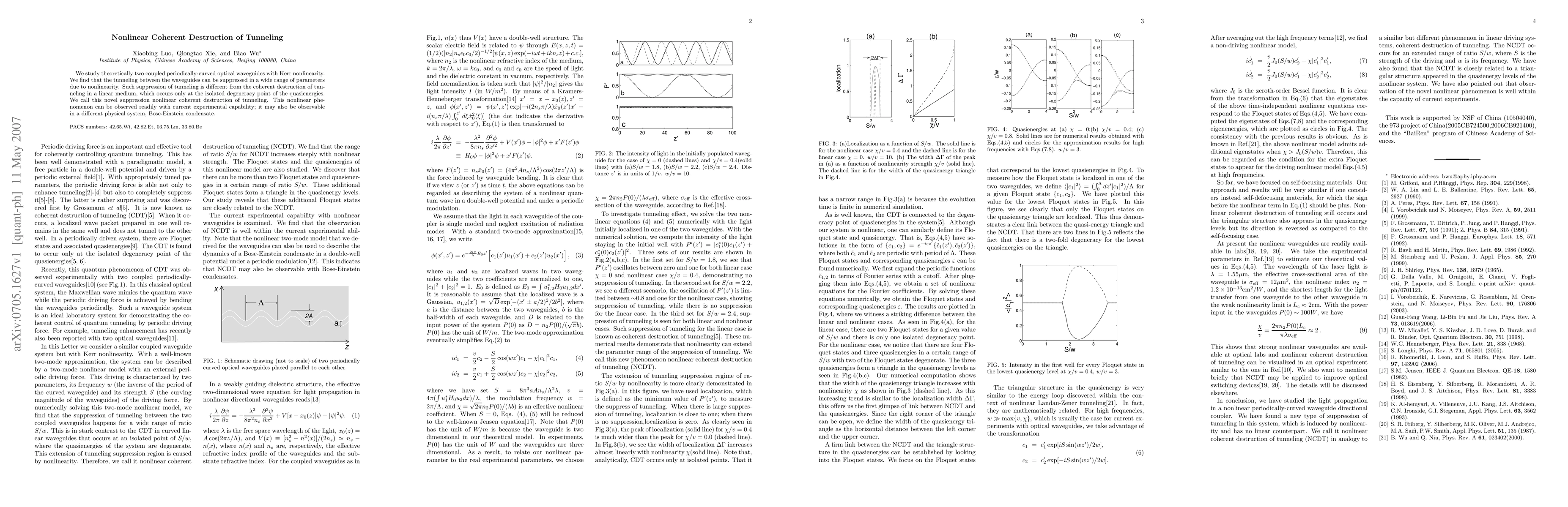 We study theoretically two coupled periodically-curved optical waveguides with Kerr nonlinearity. We find that the tunneling between the waveguides can be suppressed in a wide range of parameters due to nonlinearity. Such suppression of tunneling is different from the coherent destruction of tunneling in a linear medium, which occurs only at the isolated degeneracy point of the quasienergies. We call this novel suppression nonlinear coherent destruction of tunneling.