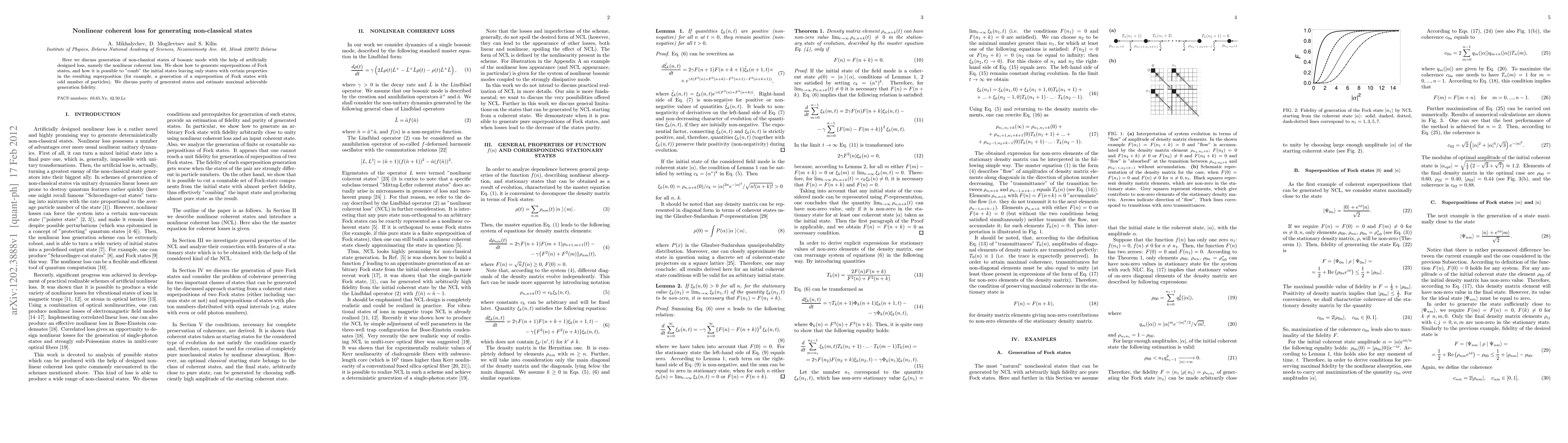 The paper introduces the concept of nonlinear coherent loss and demonstrates its application in generating non-classical states, providing conditions for high-fidelity generation and discussing the coherence properties of the resulting states.