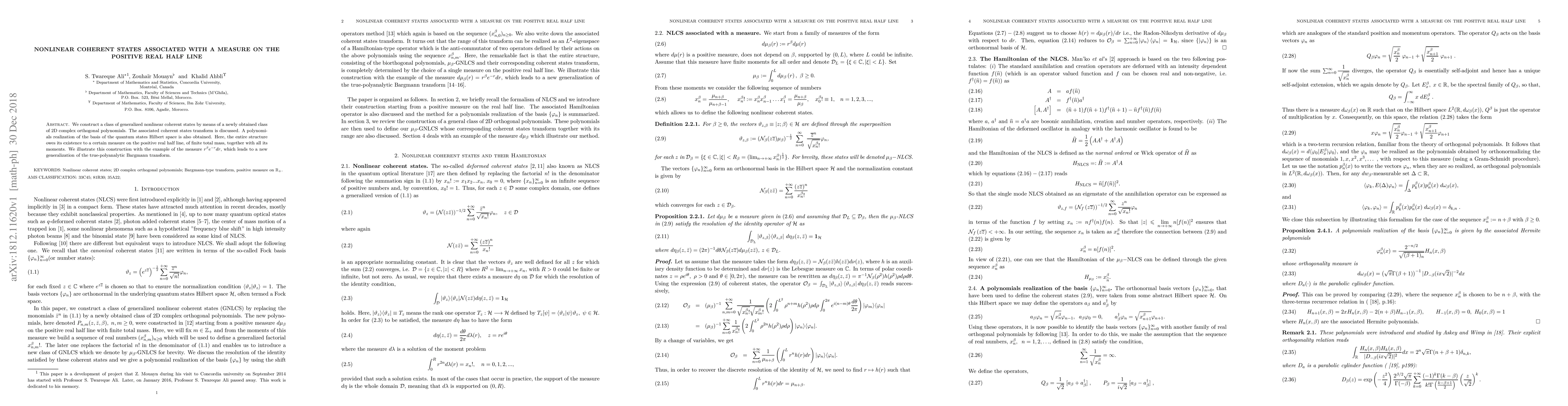 This paper constructs generalized nonlinear coherent states using a new class of 2D complex orthogonal polynomials, linked to a specific measure on the positive real half line. The associated coherent states transform and a polynomial basis for the quantum states Hilbert space are also discussed.