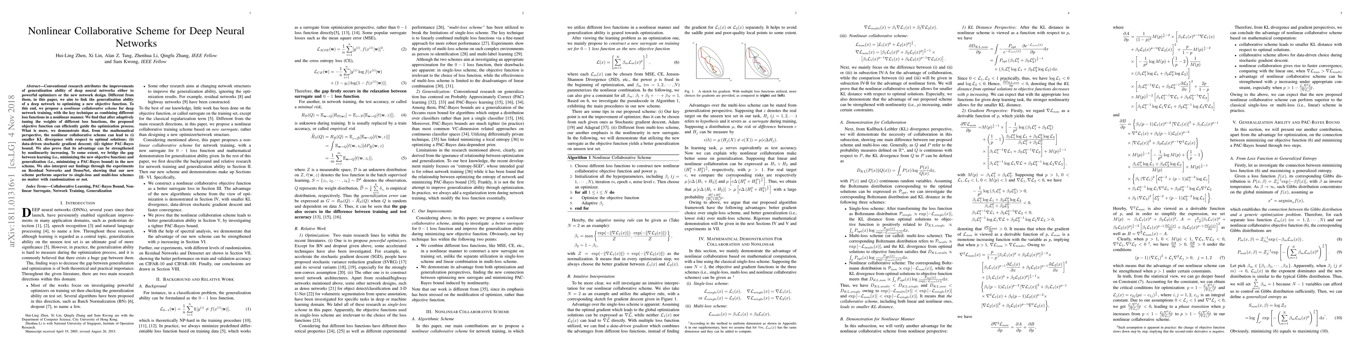Conventional research attributes the improvements of generalization ability of deep neural networks either to powerful optimizers or the new network design. Different from them, in this paper, we aim to link the generalization ability of a deep network to optimizing a new objective function. To this end, we propose a \textit{nonlinear collaborative scheme} for deep network training, with the key technique as combining different loss functions in a nonlinear manner. We find that after adaptively tuning the weights of different loss functions, the proposed objective function can efficiently guide the optimization process. What is more, we demonstrate that, from the mathematical perspective, the nonlinear collaborative scheme can lead to (i) smaller KL divergence with respect to optimal solutions; (ii) data-driven stochastic gradient descent; (iii) tighter PAC-Bayes bound. We also prove that its advantage can be strengthened by nonlinearity increasing. To some extent, we bridge the gap between learning (i.e., minimizing the new objective function) and generalization (i.e., minimizing a PAC-Bayes bound) in the new scheme. We also interpret our findings through the experiments on Residual Networks and DenseNet, showing that our new scheme performs superior to single-loss and multi-loss schemes no matter with randomization or not.