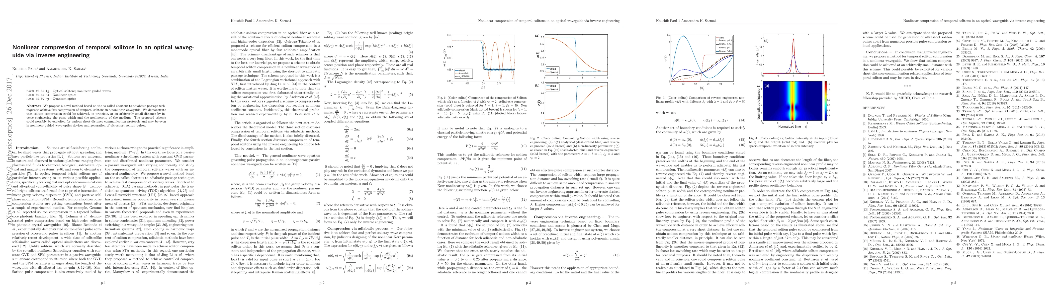 This paper introduces a novel method for rapidly compressing temporal solitons in optical waveguides using inverse engineering and adiabatic passage techniques. The proposed scheme allows for soliton compression at minimal distances, potentially enabling advancements in short-distance communication and ultrashort pulse generation.